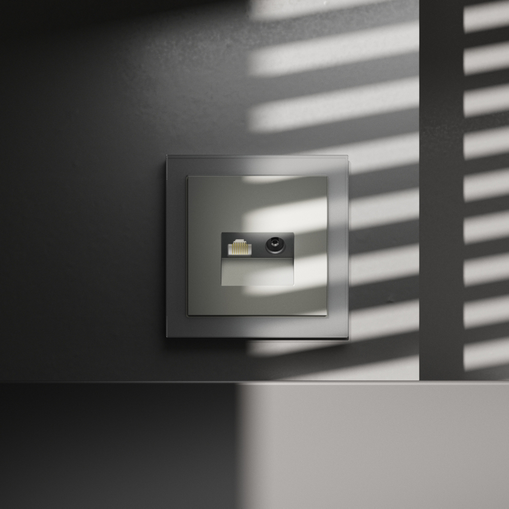 Купить "Розетка телевизионная встраиваемая TV+RJ45 кат. 6 Voltum S70 VLS060705 (сталь)"