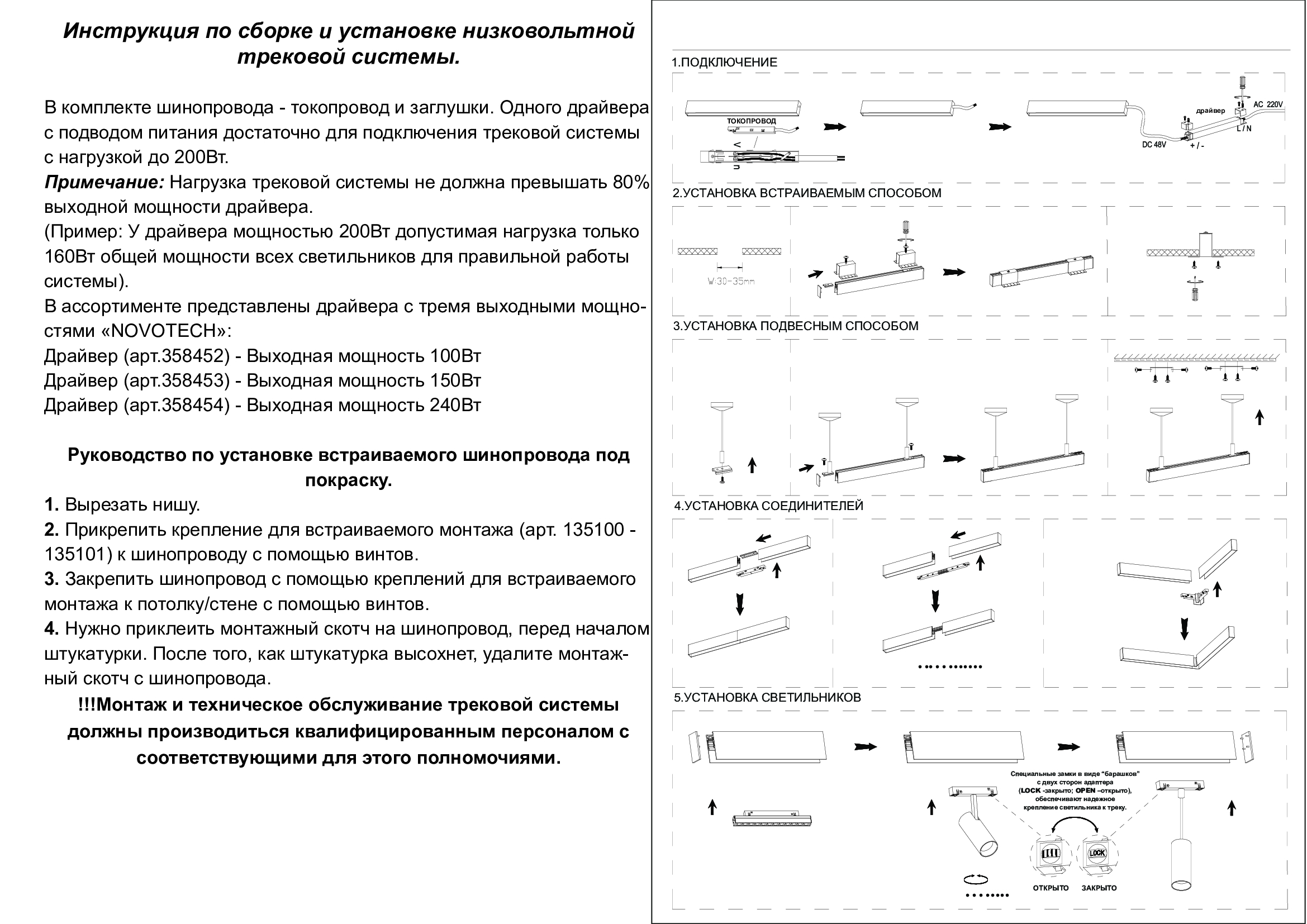 Современная компактная низковольтная трековая система 48В ™NOVOTECH предназначенная специально для интерьеров - ширина трека всего 26,2 мм. Это новое высокотехнологичное решение для искусственного освещения и декоративной подсветки. Шинопроводы просты в монтаже и удобны в эксплуатации. Это новейшая замена магнитной трековой системы. Трек можно отрезать в любом месте с точностью до миллиметра в отличие от магнитного, где длина строго зависит от размера отдельного сегмента. При этом треки легко соединяются друг с другом и их стыки не видны. Это позволяет собрать трековую систему любой длины и конфигурации. Основа шинопровода представляет собой алюминиевый профиль, который может напрямую крепиться к потолку, встраиваться в потолок с помощью специальных креплений и подвешиваться с помощью комплекта подвесов. Специальные замки в виде “барашков” обеспечивают надежное крепление светильника к треку. Светильник начинает работать, когда защелкивающееся соединение контактирует с медным слоем с обеих сторон шинопровода. Торопитесь сделать заказ в интернет-магазине 220svet.ru!