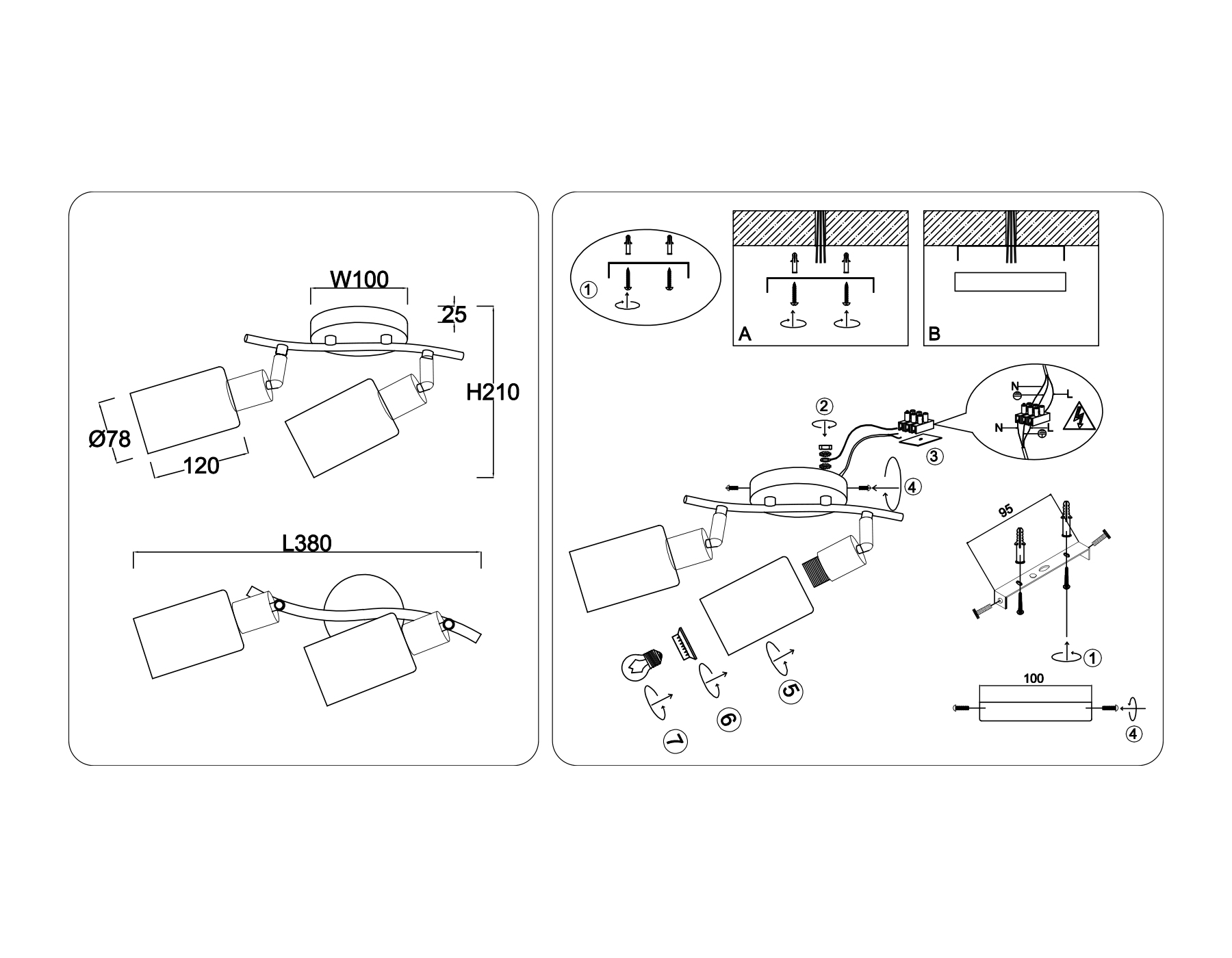 - Количество ламп: 2 шт