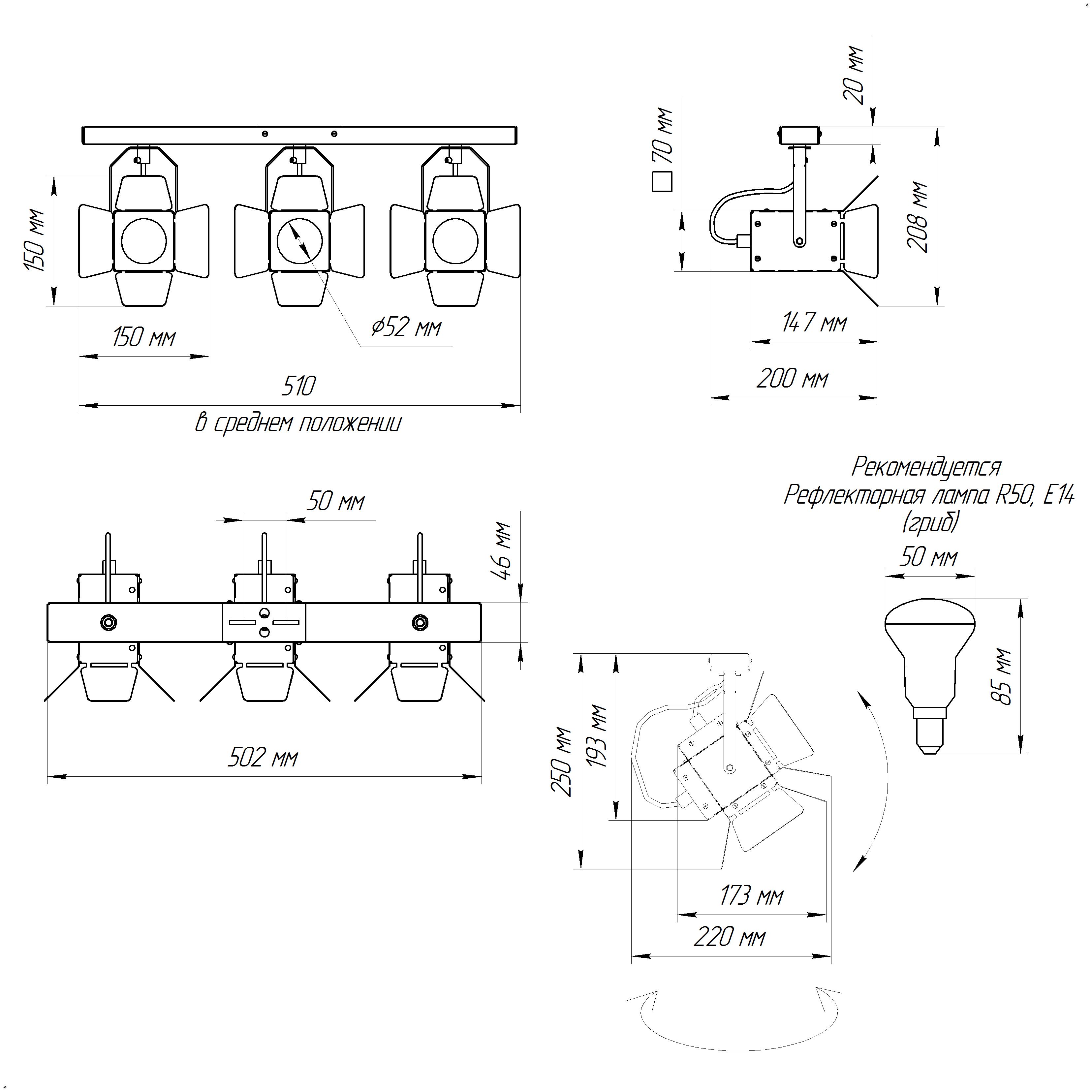 - Количество ламп: 3 шт