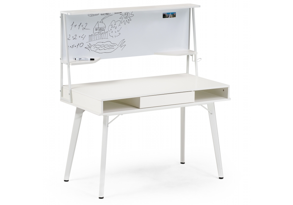 Стол оснащен магнитно-маркерной доской, двумя полками и крючком для наушников.
