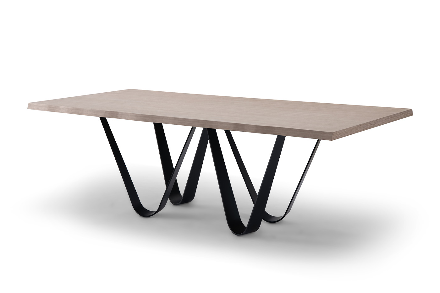 Красивый светлый обеденный стол гармонично дополнит интерьер кухни или столовой, оформленных в светлых тонах. Столешница из шпонированного МДФ установлена на металлическую основу необычной формы. Прямоугольный обеденный стол – отличное решение для просторных гостиных и столовых комнат, чтобы вместить дружную компанию за ужином. Данная модель прекрасно впишется в интерьерную стилистику неоклассики, лофта и модерна. Легко сочетается с предметами мебели и декора в светлых и темных оттенках. Купить обеденный стол можно вместе с дизайнерскими стульями и креслами в современном стиле.