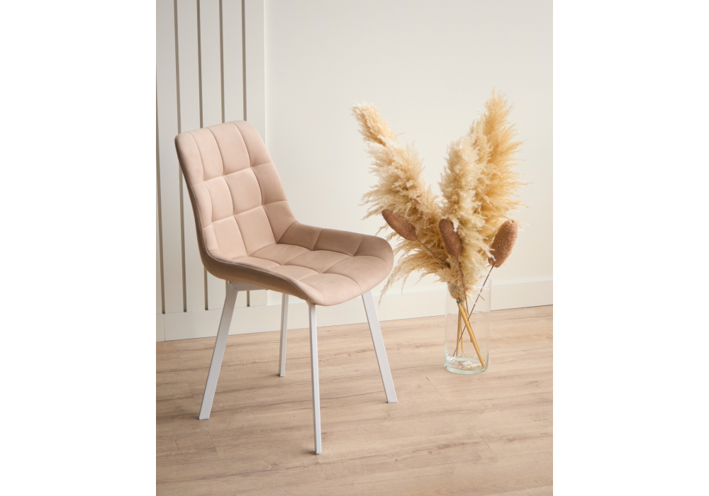 Материал каркаса - металл; Материал сиденья - велюр; Материал обивки - велюр; Цвет ножек - белый; Ширина - 50; Глубина - 60; Высота - 80; Ширина сиденья - 44; Глубина сиденья - 41; Высота сиденья - 48;