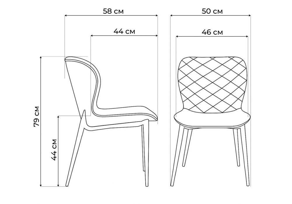 Материал каркаса - металл; Материал сиденья - ткань; Материал обивки - ткань; Ширина - 50; Глубина - 58; Высота - 79; Ширина сиденья - 46; Глубина сиденья - 44; Высота сиденья - 44;