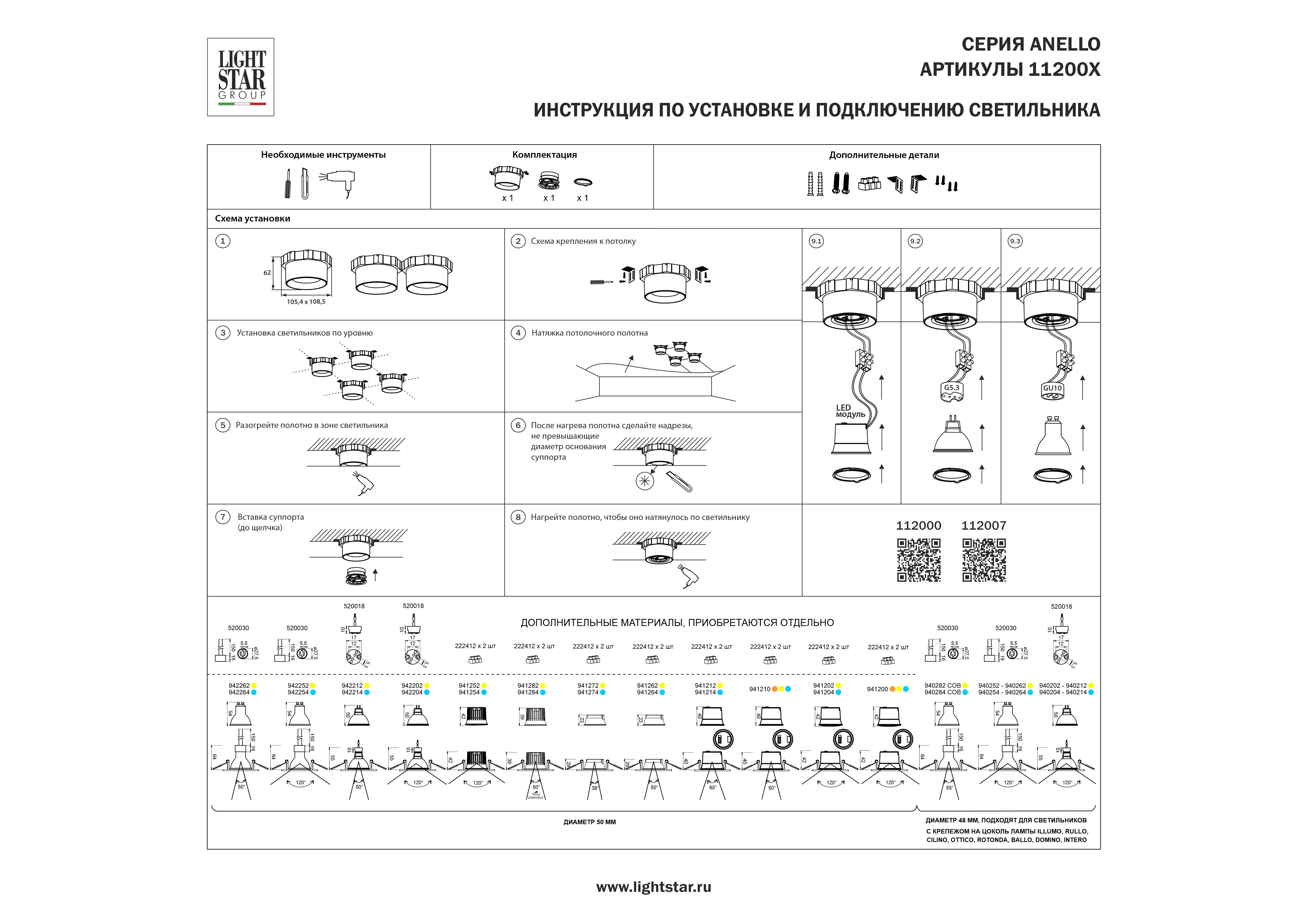 Светильник в натяжной потолок Anello Lightstar 112007 в Оренбурге
