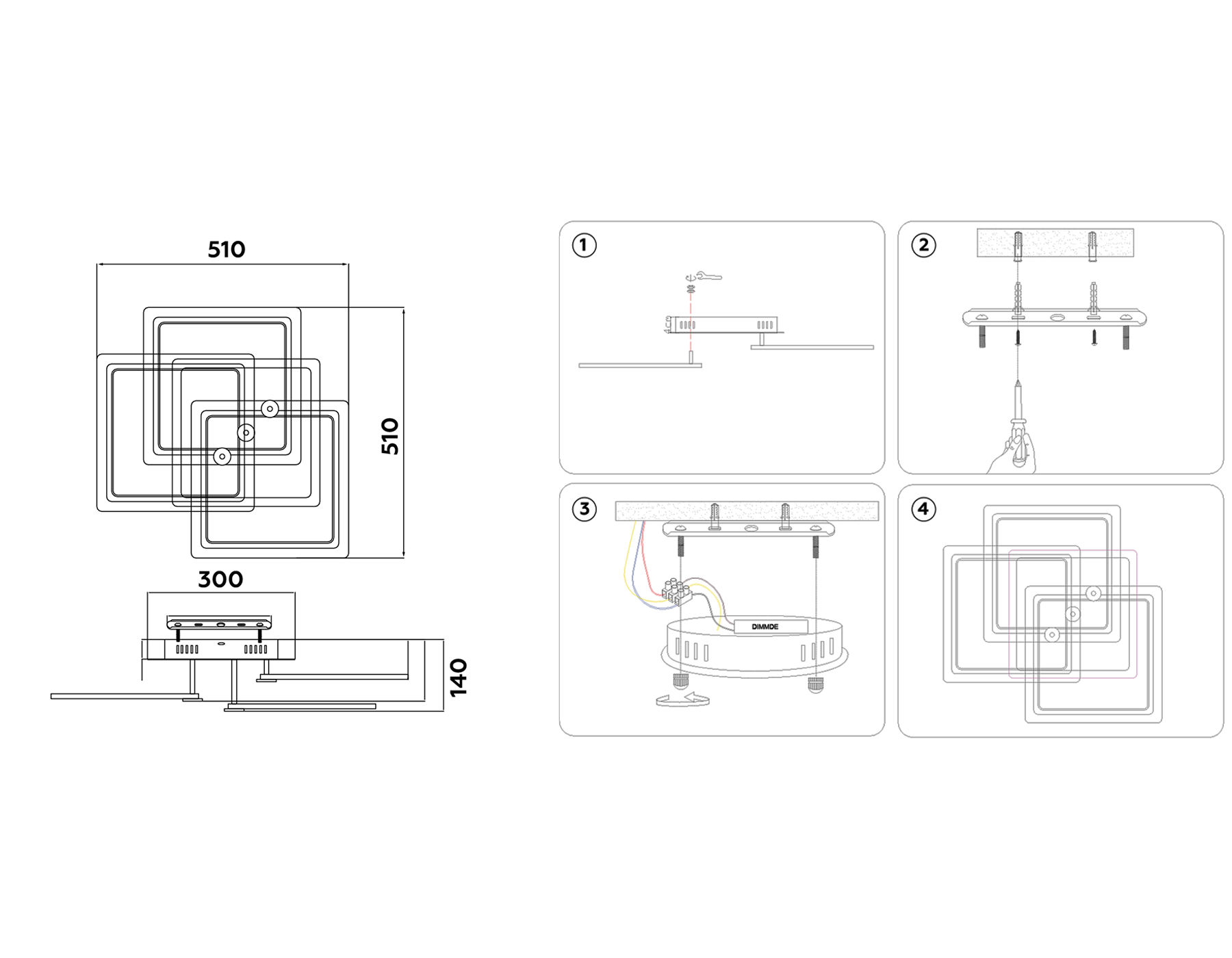 - Форма плафона: Квадратный