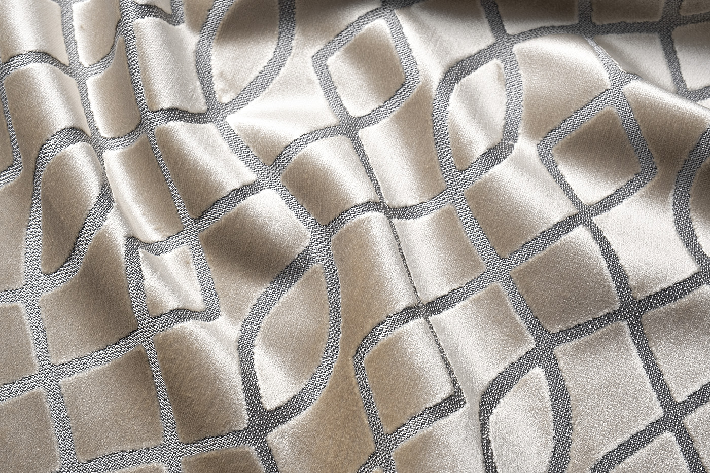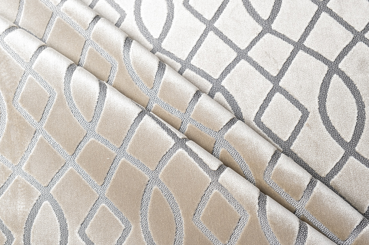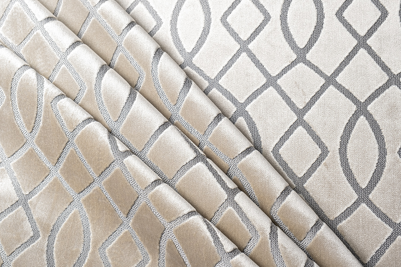 Бархат с рисунком. Роскошный материал среди видов тканей для штор и мягкой мебели, придающий ей шикарный внешний вид, а интерьеру в целом — настоящую роскошь. Материалы: 48% Полиэстер, 52% вискоза