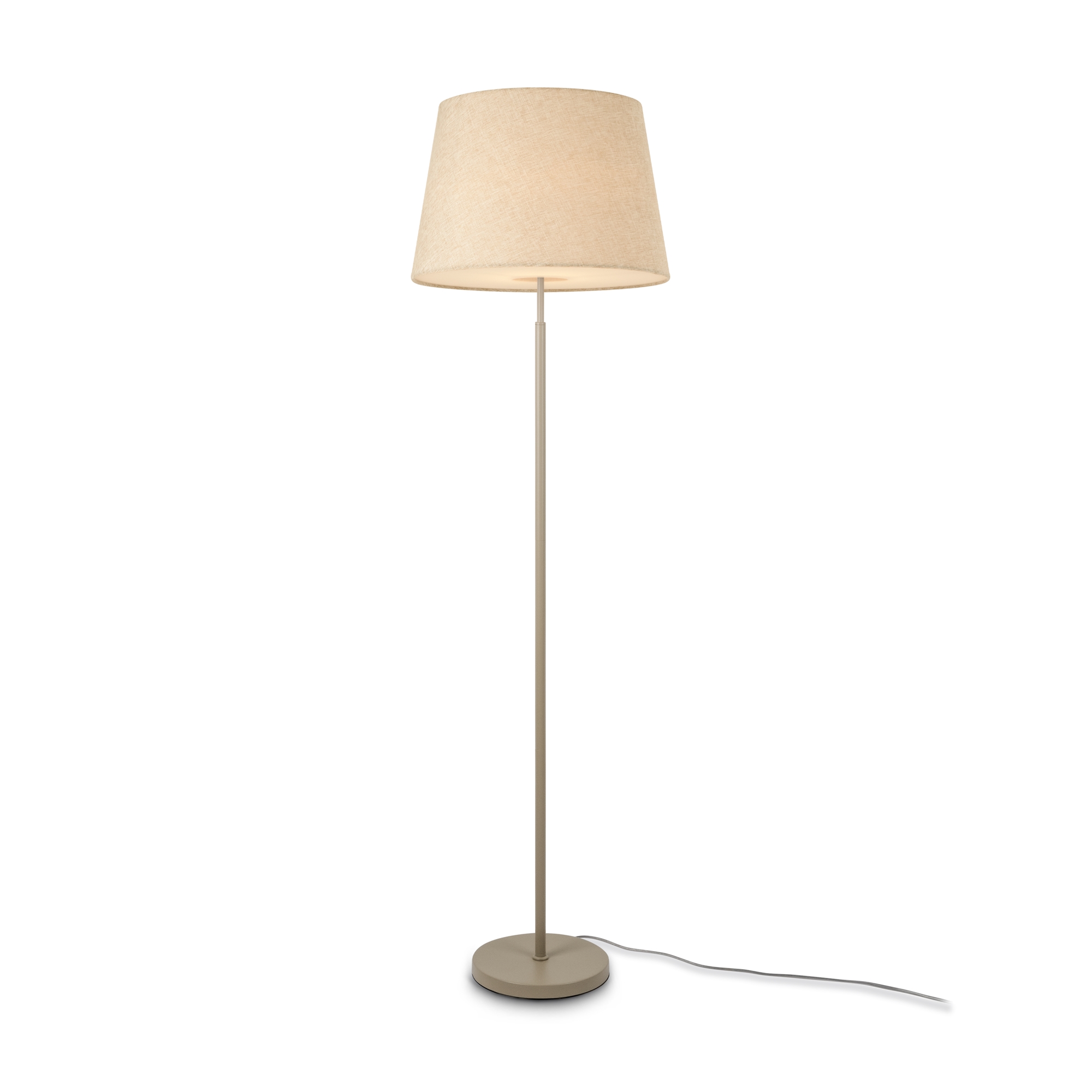 Металлическая арматура в цвете RAL 1019. Тканевые абажуры в светлых оттенках. Лампа E27 (не в комплекте).Бра с двумя источниками освещения Led и цоколь E27. Разнообразие типов светильников в серии.