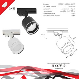 Трековый однофазный светильник Reluce Technical 53015-0.9-001CT GX53 WT