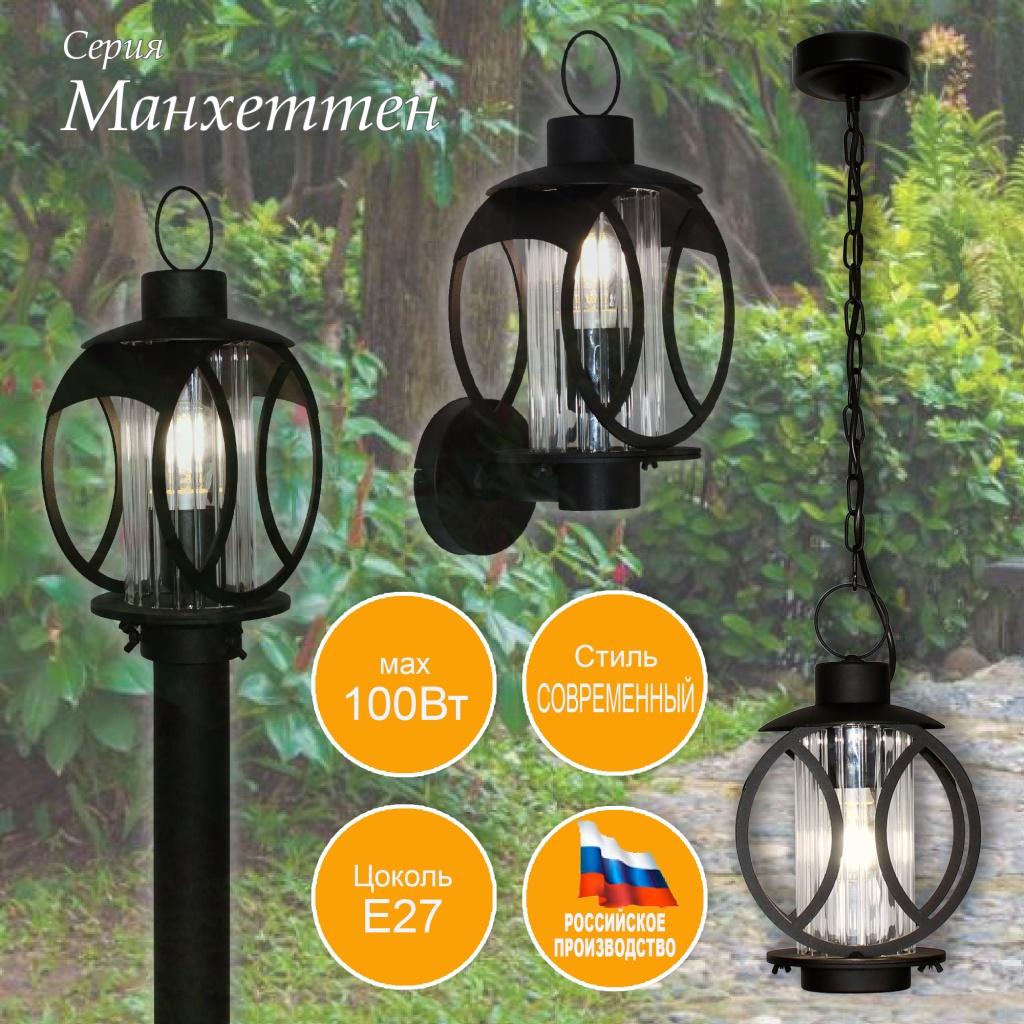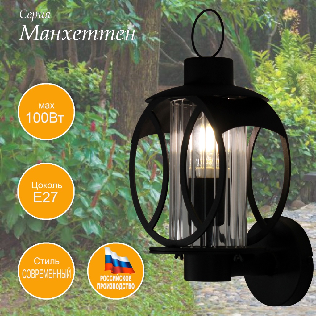 Уличный настенный светильник чёрный Манхеттен Элетех 1030480547 в Оренбурге