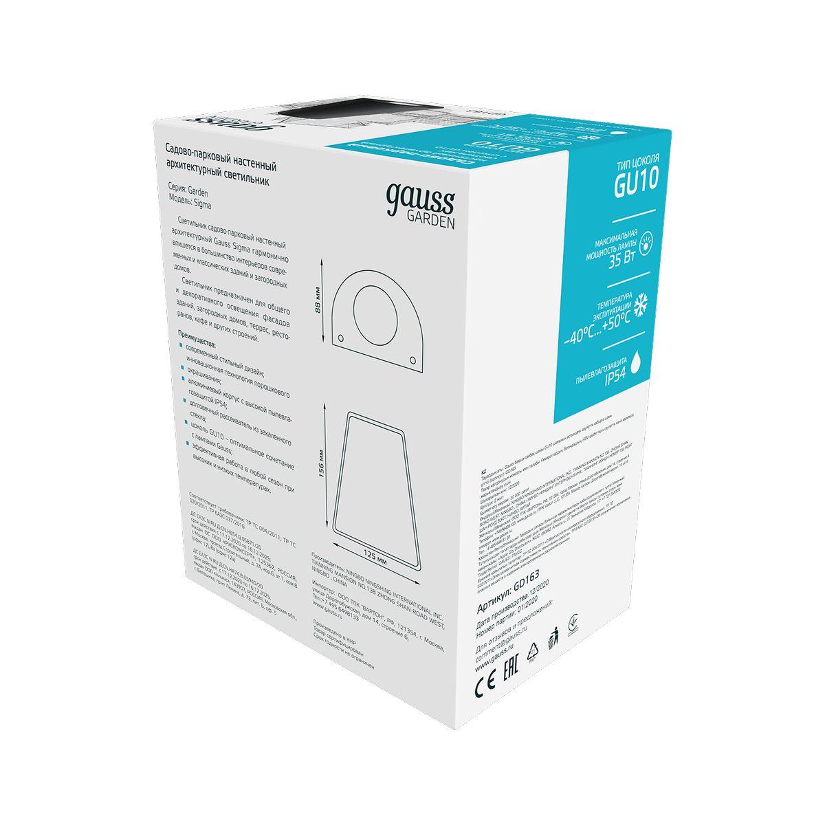 Уличный настенный светильник Gauss Sigma GD163 в Оренбурге