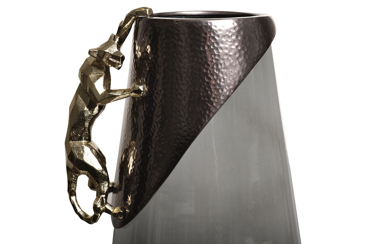 Декоративная стеклянная ваза с ягуаром из алюминия – эксклюзивный предмет интерьера, который задает тон всей обстановке. Тандем стекла и металла является классикой и всегда органично выписывается в интерьерные решения ар-деко, модерн, ар-нуво, поп-арт, шебби-шик, и даже лофт. Испортить стилистическую концепцию интерьера этой вазой просто невозможно – она будет играть одну из главных ролей в декоре. Безупречное качество, элегантность форм, эксклюзивность дизайна делают эту стеклянную вазу статусным подарком, уместным для любого повода. Ей везде найдется место – в гостиной и спальне, рабочем кабинете и ресторане