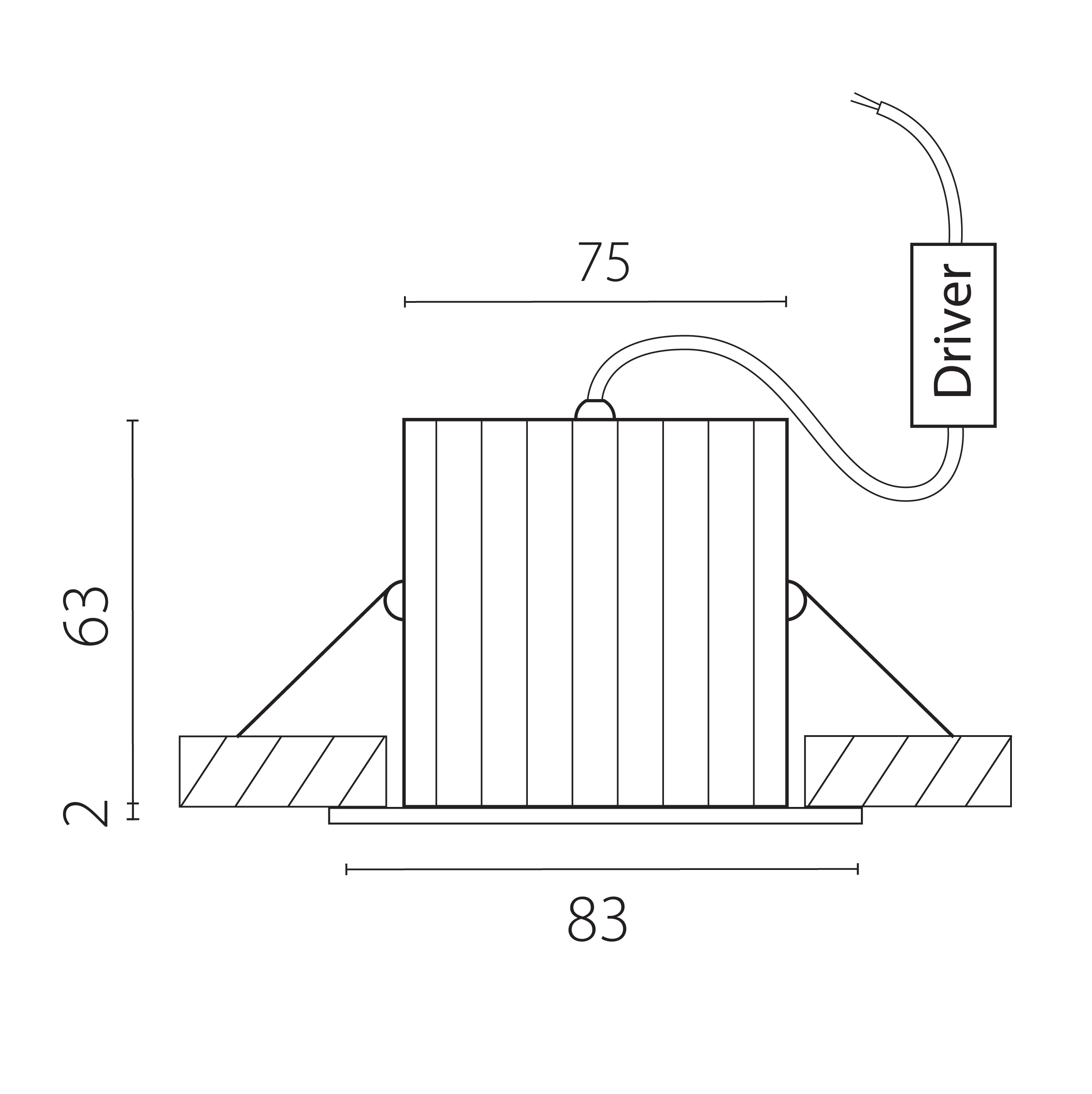 - Диаметр врезного отверстия: 75 мм (7.5 см)