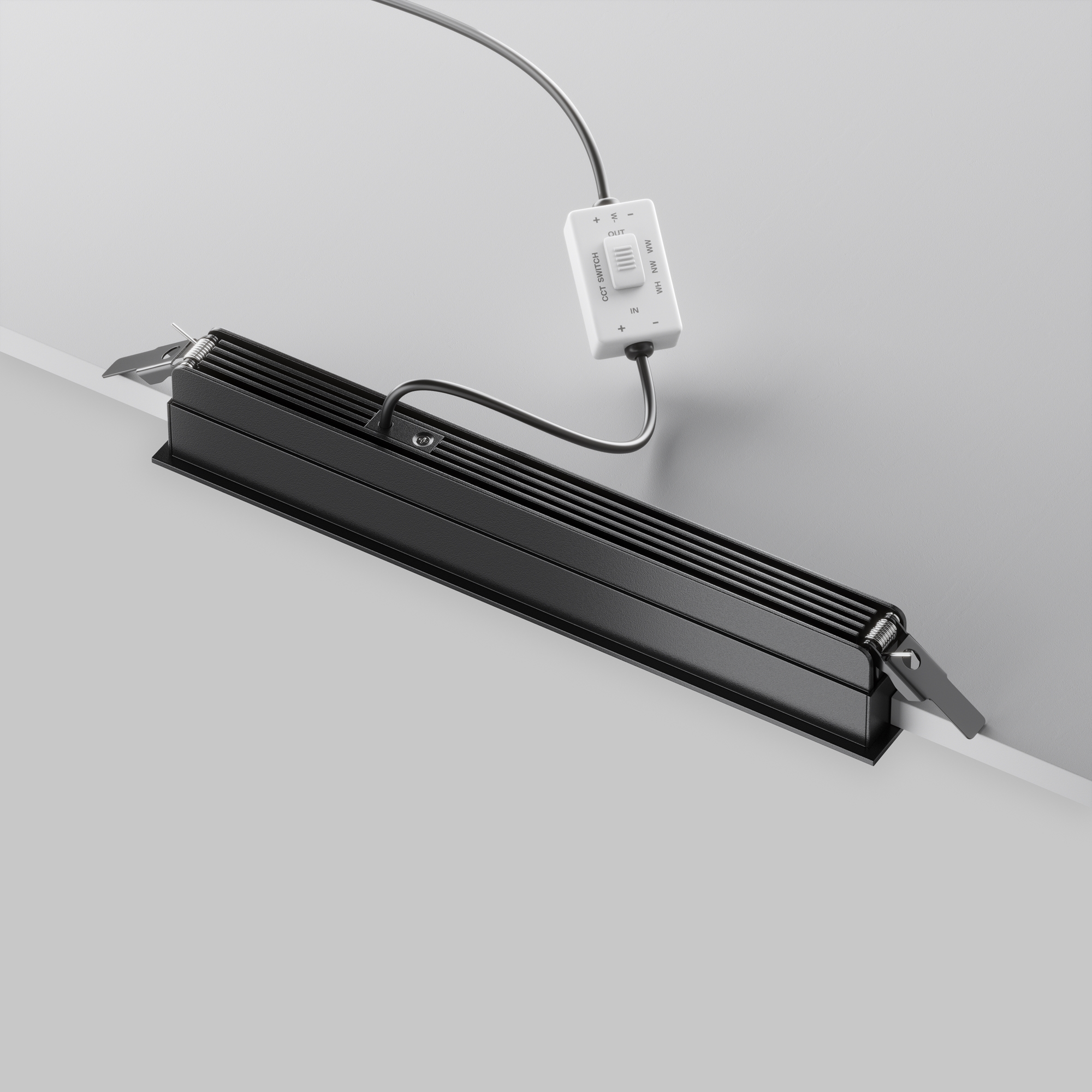 Материал корпуса - металл; цвет - черный. Равномерная заливка цветом стен. LED-источник света. Белый матовый рассеиватель. Переключатель цветовой температуры(2.7-3-4К). Высокий коэффициент цветопередачи >90. Совместимость с источниками питания Dali и Triac.