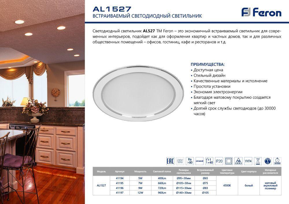 Купить "Встраиваемый светодилдный светильник Feron 41196"