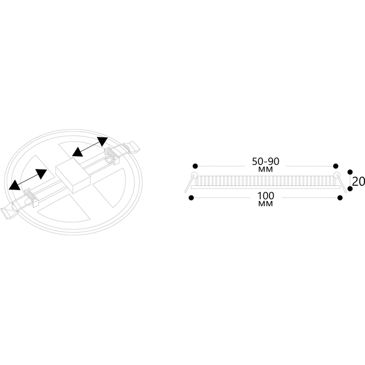 - Диаметр врезного отверстия: 50-90 мм