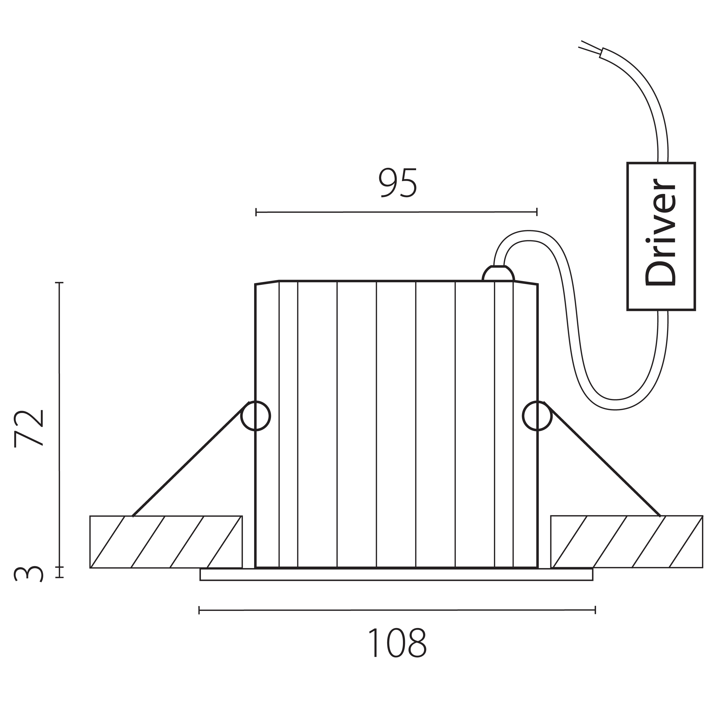- Диаметр врезного отверстия: 95 мм (9.5 см)