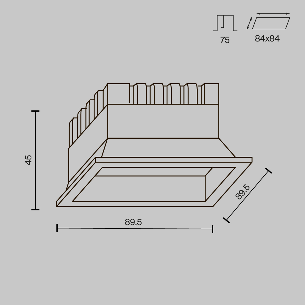 - Диаметр врезного отверстия: 84*84 мм